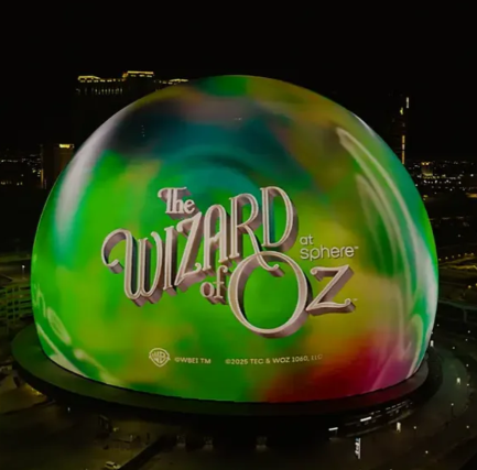 The Wizard of Oz at Sphere transports audiences, making them feel like they have stepped inside the film and are traveling down the yellow brick road with Dorothy and her friends. The experience fills Sphere’s 160,000 sq. ft. interior display plane, which wraps up, over and around the audience to create a fully immersive visual environment. To take advantage of Sphere Immersive Sound’s 167,000 programmable speakers, and ability to direct sound anywhere in the venue, the original film’s score has been re-recorded to take on new clarity. Multi-sensory 4D elements have been combined and leveraged for maximum impact to make audiences feel like they are in the experience alongside the characters, such as high-velocity wind arrays, atmospheric fog, towering fire bursts, bubbles, and infrasound haptic seats.